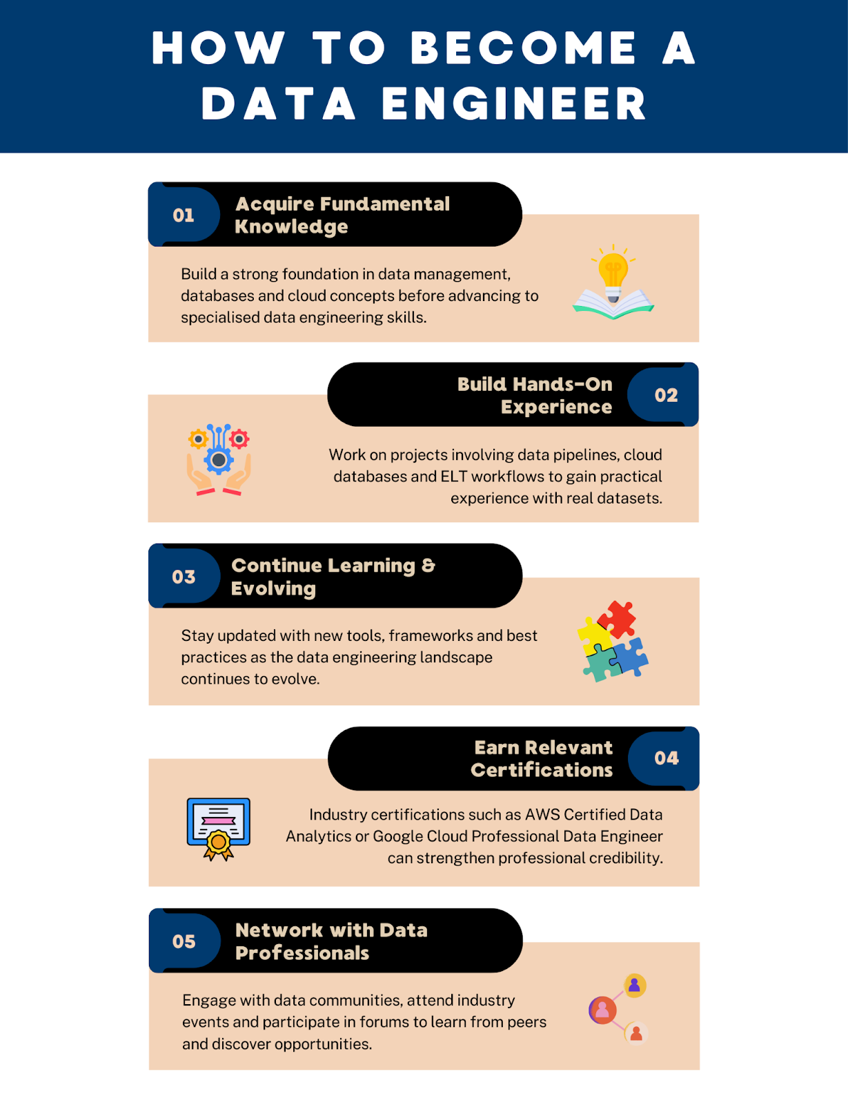 Becoming a data engineer offers a rewarding professional pathway for those who enjoy working at the intersection of technology, problem solving, and business impact. As organisations continue to adopt data-driven strategies, data engineers will remain central to enabling analysis, automation, and innovation. By developing both technical expertise and strong communication skills, aspiring professionals can position themselves for long-term success in this evolving field.