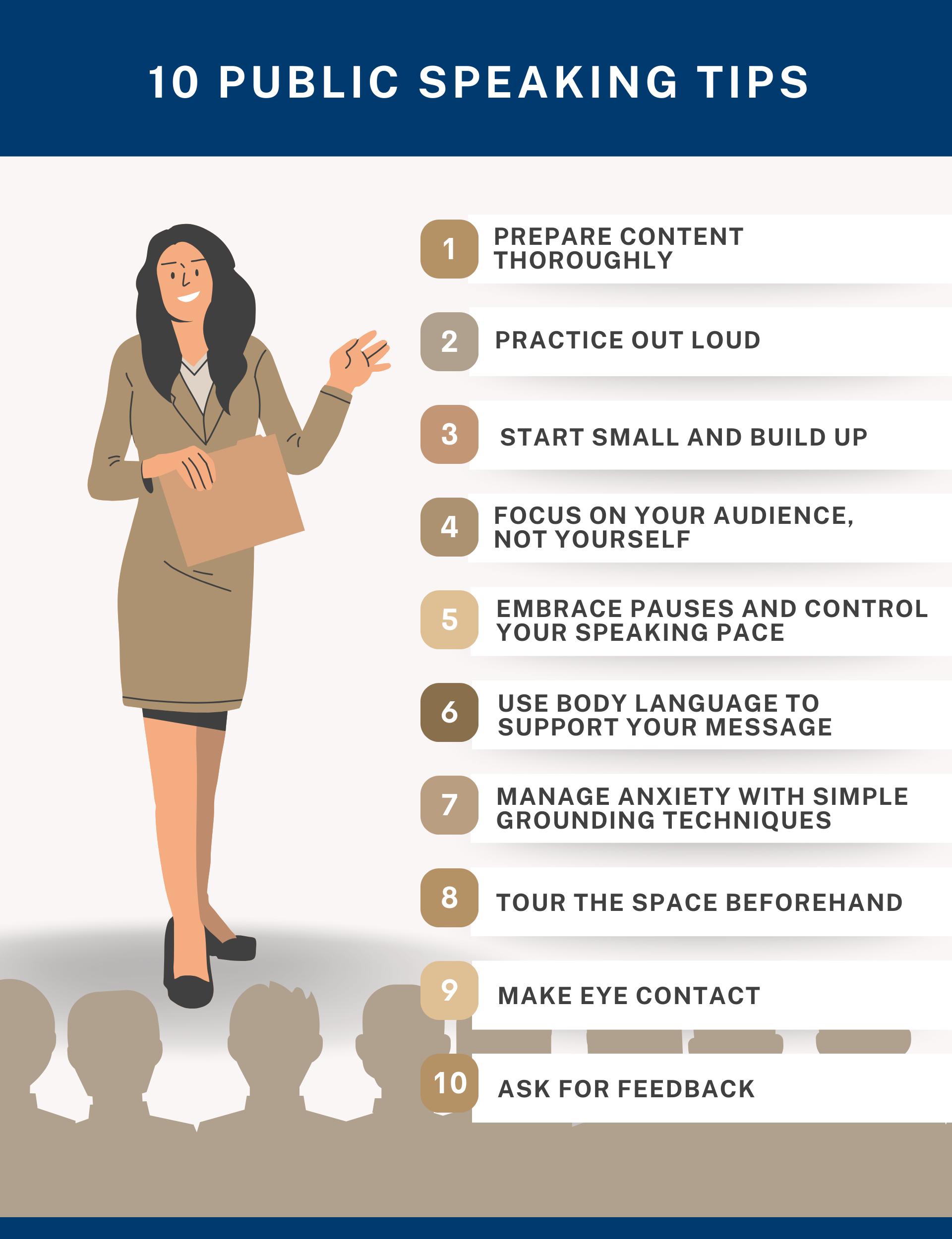 Improving public speaking requires a combination of preparation, exposure, and self-awareness. The following tips focus on practical actions that gradually build confidence and delivery quality.