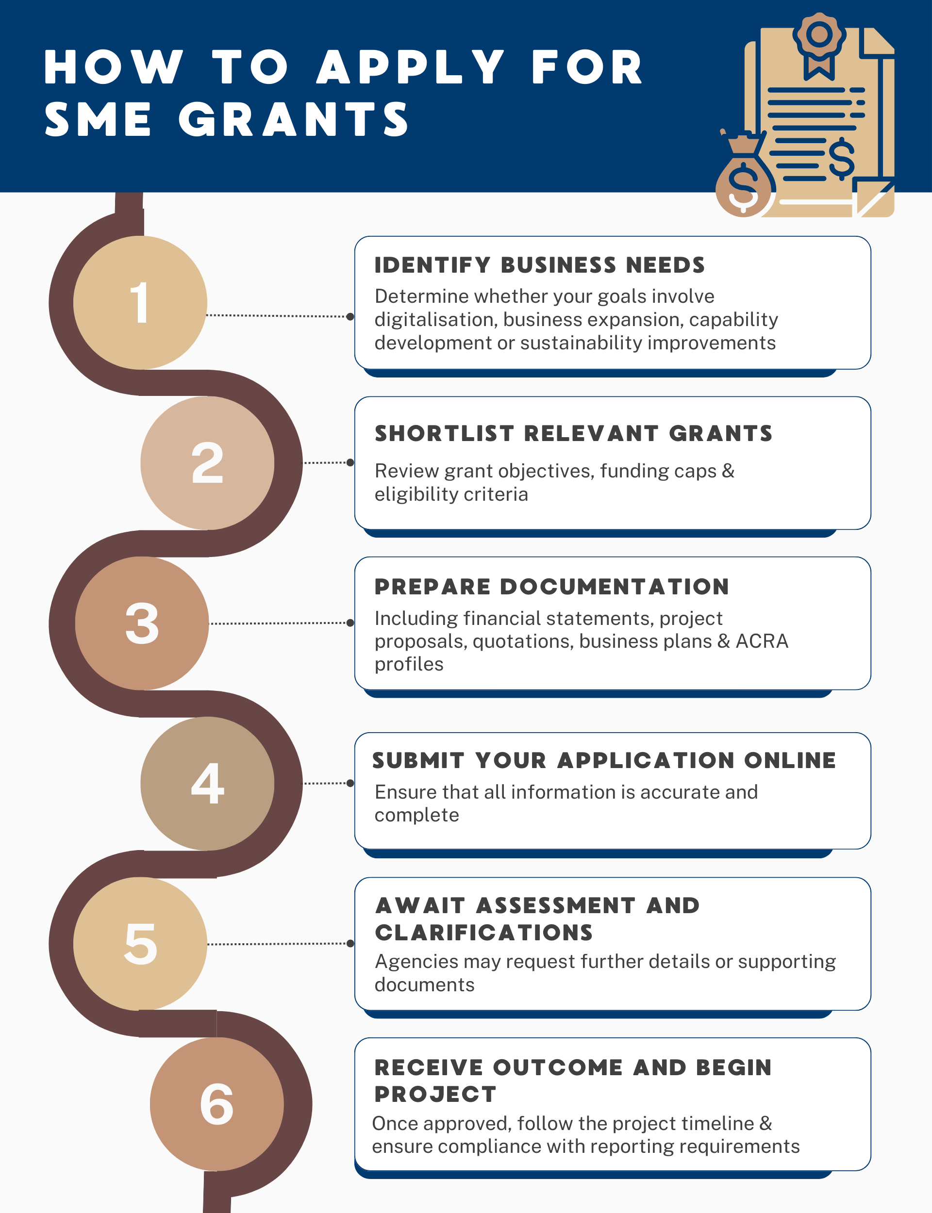 Most grants share common baseline requirements. Businesses should consider applying when they are ready to invest in growth, digitalisation or capability building, with clear project goals and financial stability.